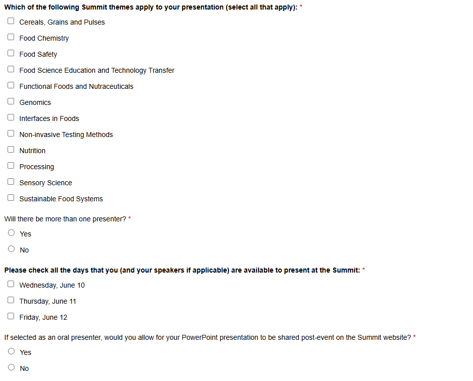 When submitting an abstract, you will be asked the following. Note all information must be submitted in one sitting.